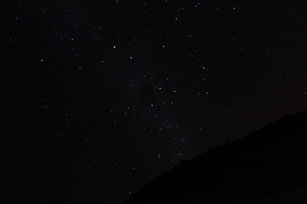 Successivamente montiamo l’accampamento con le tende, il mio compagno di tenda è Giovanni. Più tardi montiamo la tenda mensa e la tenda cucina e iniziamo a bollire l’acqua destinata alla cena. Nel mentre che stiamo montando la tenda, l’Illimani esce dalle nuvole, è veramente maestosa questa montagna di 6462 metri, il massiccio dell’Illimani ha 5 cime tutte sopra i 6000 metri. Il pomeriggio passa molto velocemente: parliamo, leggiamo, ci rilassiamo e giochiamo a carte. Verso le 18 iniziamo a preparare cena e ci raduniamo tutti nella tenda mensa, mangiamo riso e carne di Lama. Quando siamo usciti dalla tenda mensa è scurissimo, le tende e l’erba sono diventate bianche di brina e fa molto freddo. Ma uno spettacolo si presenta davanti a noi: milioni di stelle limpidissime e la via lattea, in lontananza le centinaia di migliaia di luci di La Paz che dista a meno di 100 km. Approfitto per scattare molte foto e verso le 21.30 andiamo in tenda per dormire. Dovevamo riposarci al meglio perché il giorno successivo avremo dovuto affrontare i 1000 metri di dislivello che separano il Campo Base dal Campo alto dell’Illimani “Nido de Condores” m. 5462. La tenda internamente è già imbrumata. Ci buttiamo sotto i sacchi a pelo e cerchiamo di riposare e dormire.